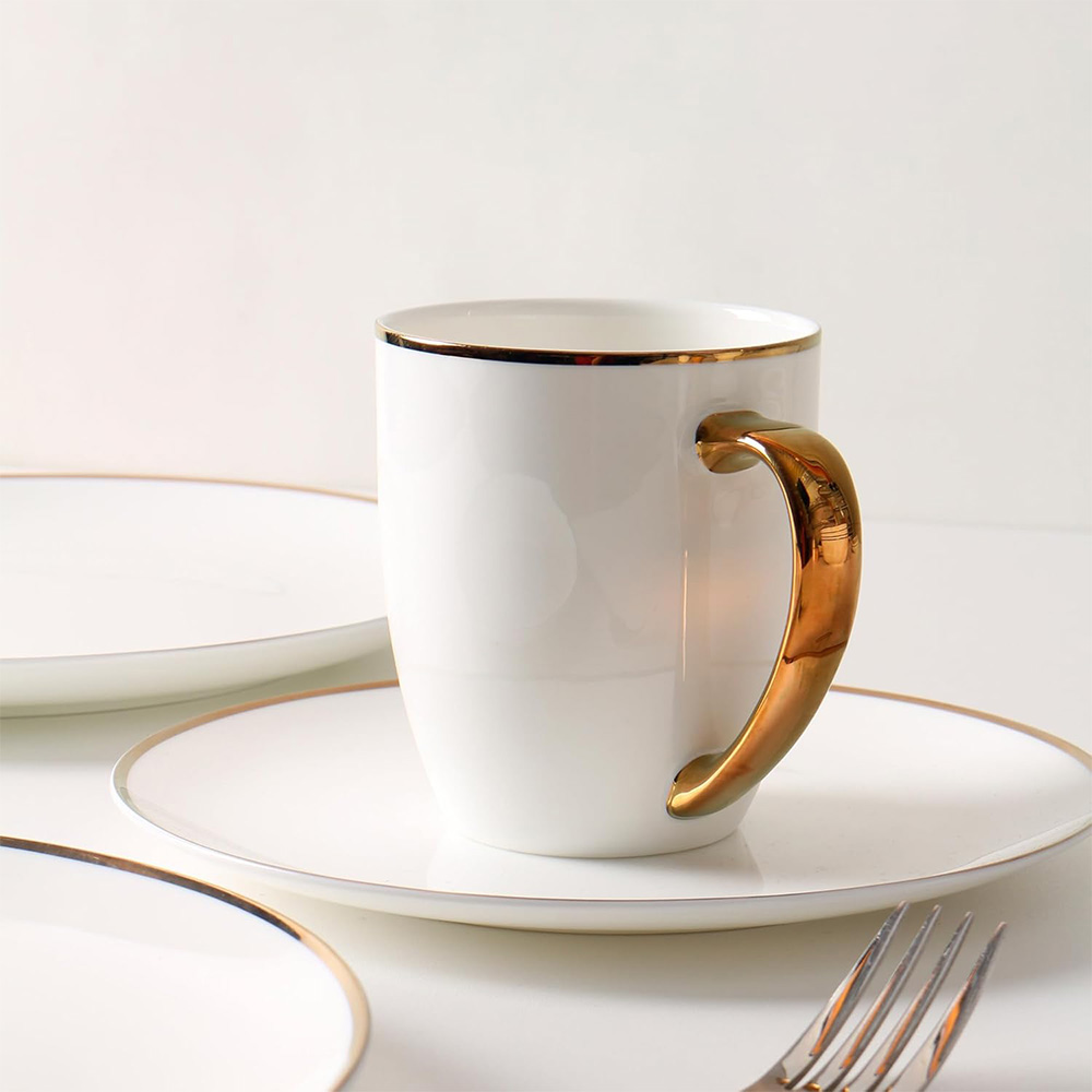 The classic white surface accented with gold trim creates a luxurious look. It complements any table setting, from modern to traditional décor. - Complete 16-Piece Set
