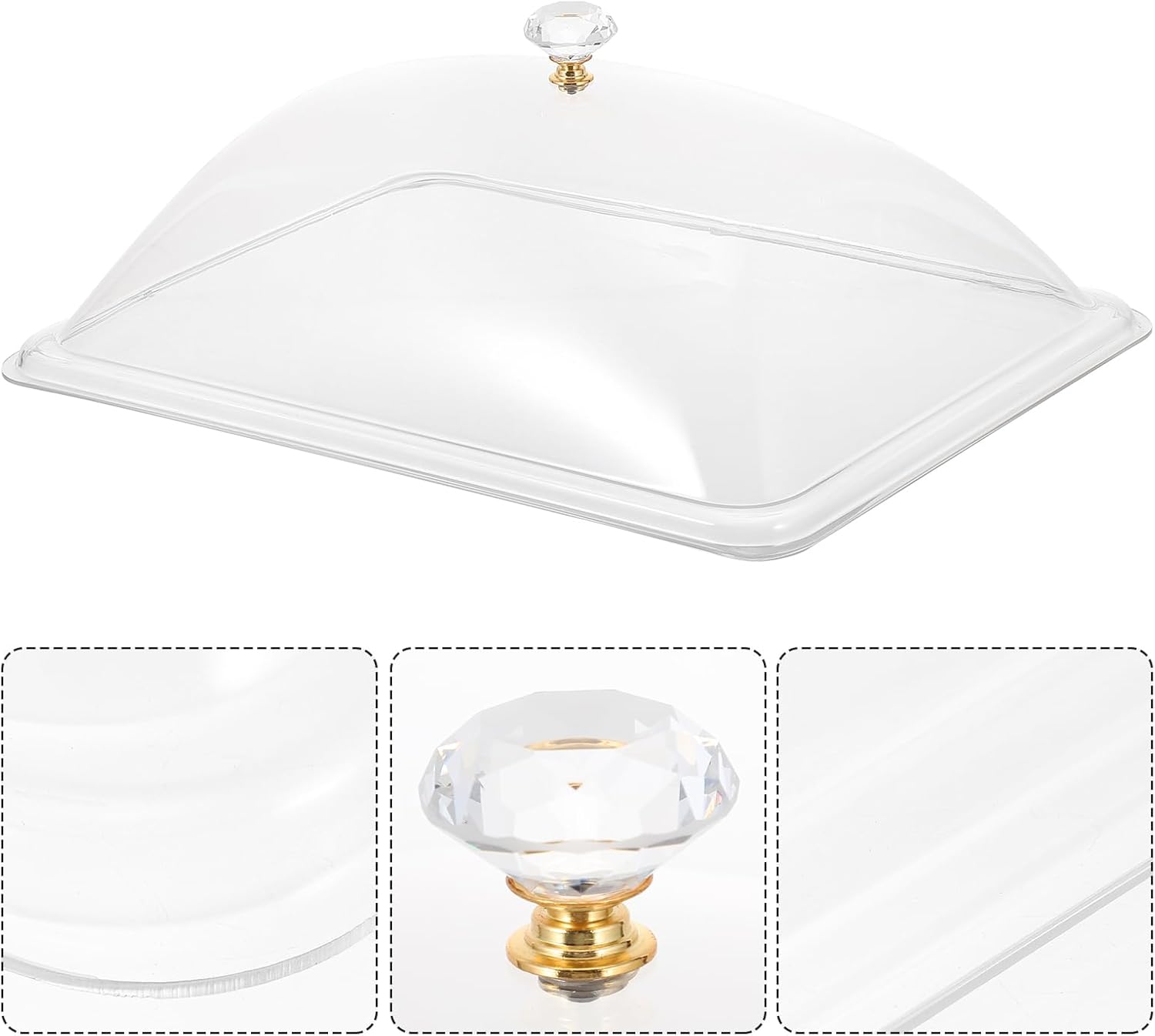 Acrylic Transparent Plate Tray Cover Square Food Tent Insulation Lid Plate Serving Guard Cake Platter Cover for Home Kitchen 42x32cm