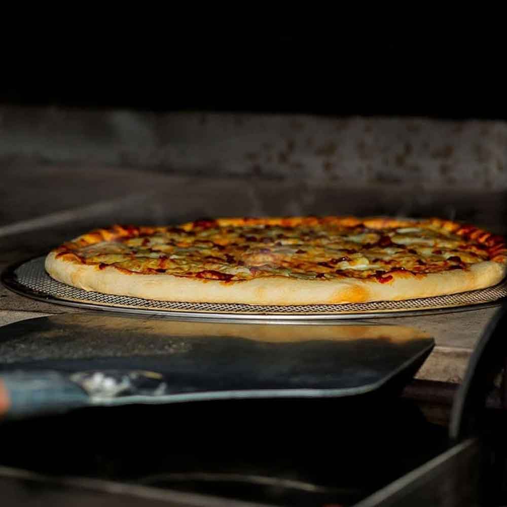 The perforated aluminum design allows hot air to circulate freely. Your pizza cooks evenly from edge to edge, producing a perfectly crisp crust without burning.