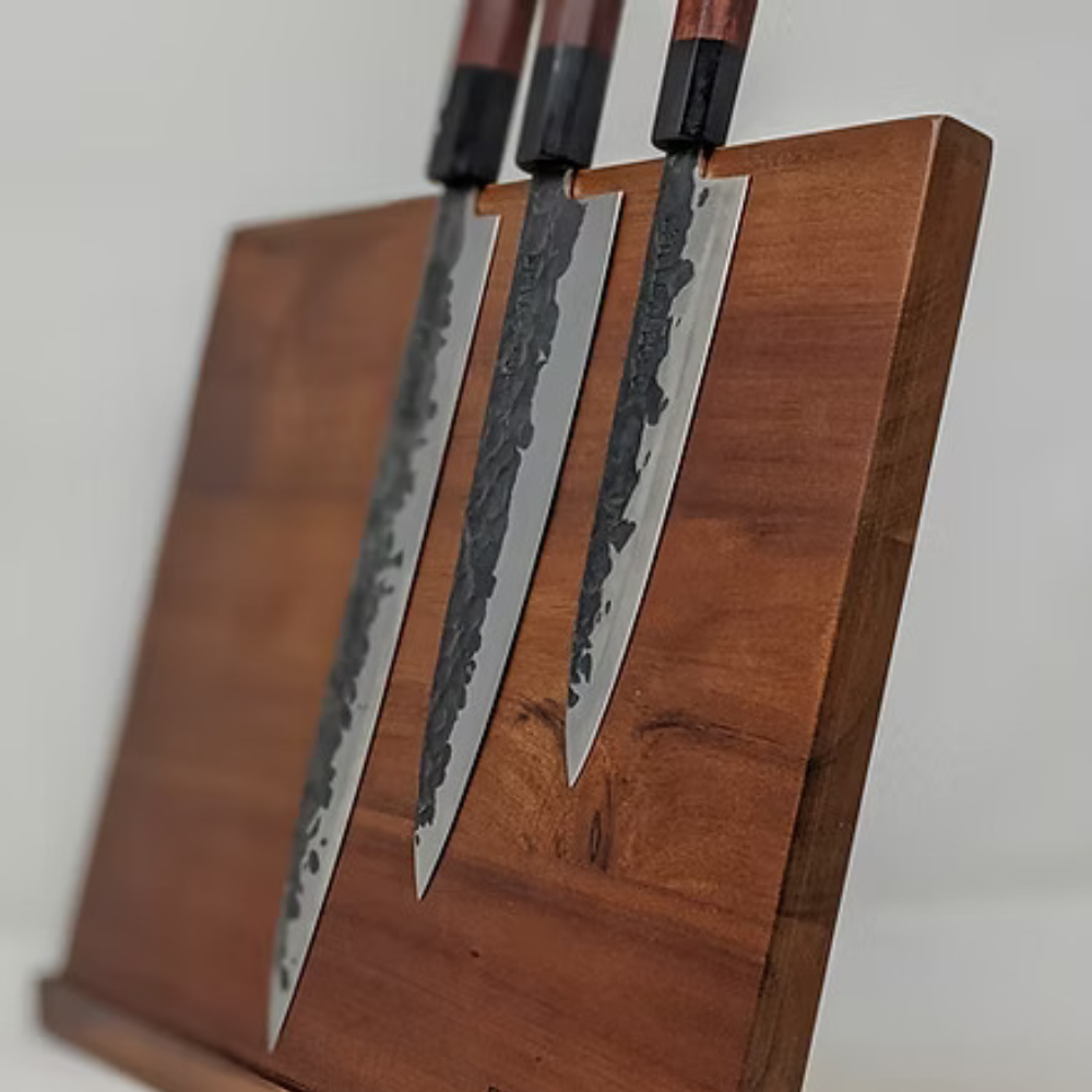 Holds different knife sizes securely. Keeps blades organized and protected.