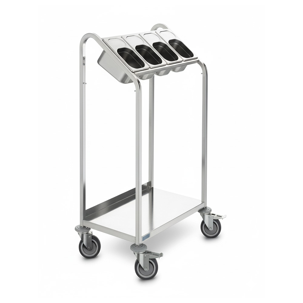 Stainless Steel Cutlery Trolley – 4 GN Tray Storage Cart for Professional Use